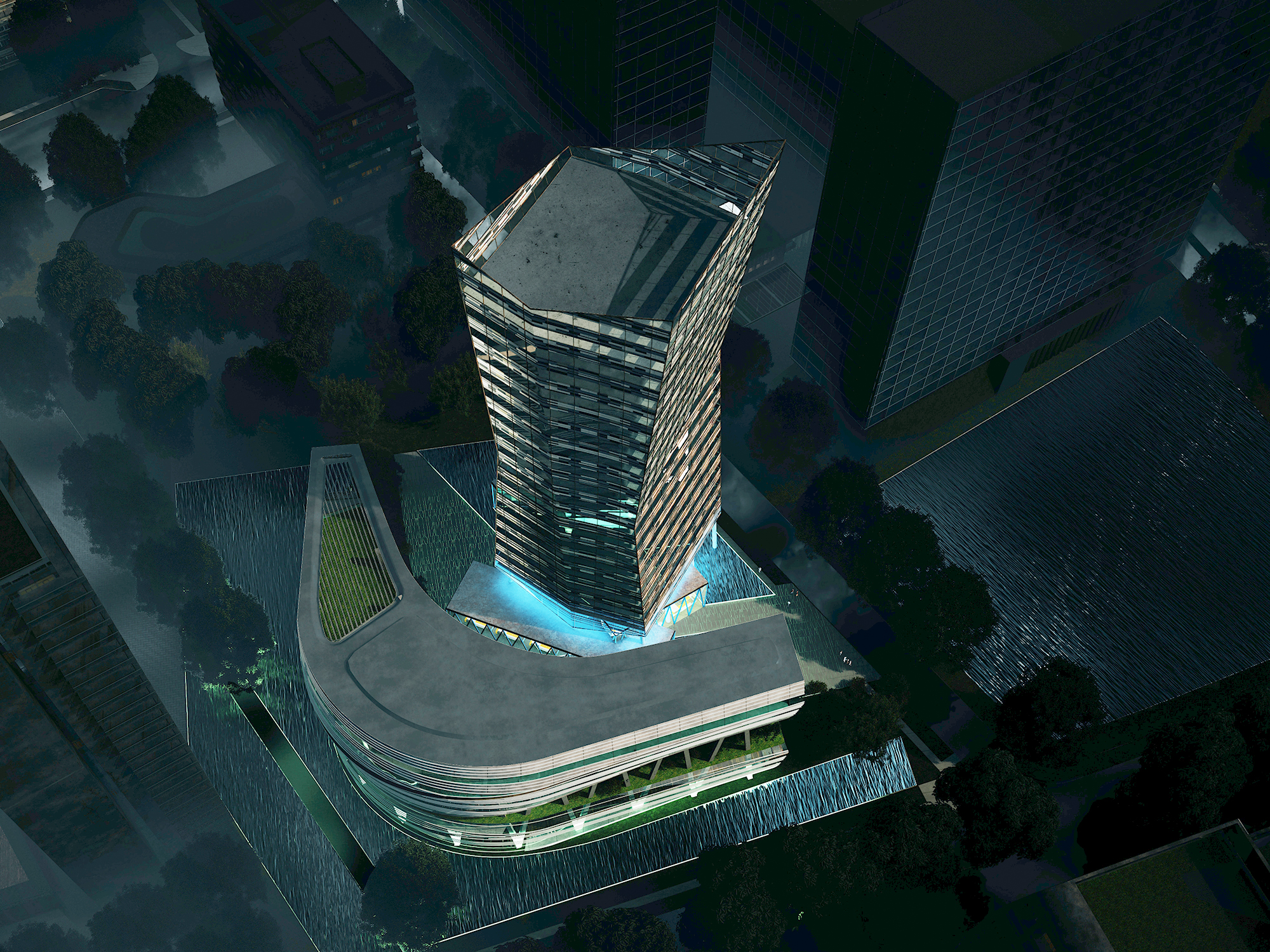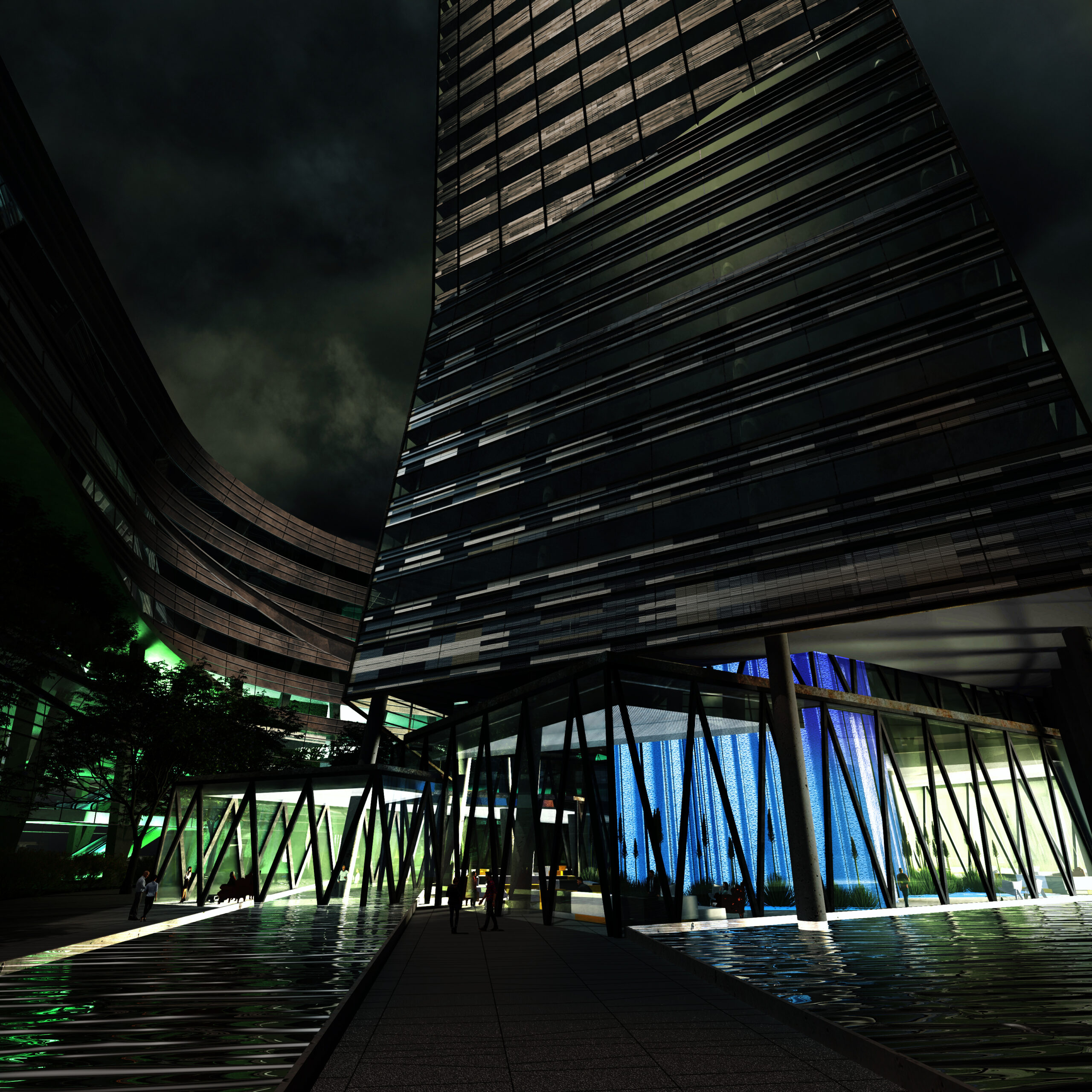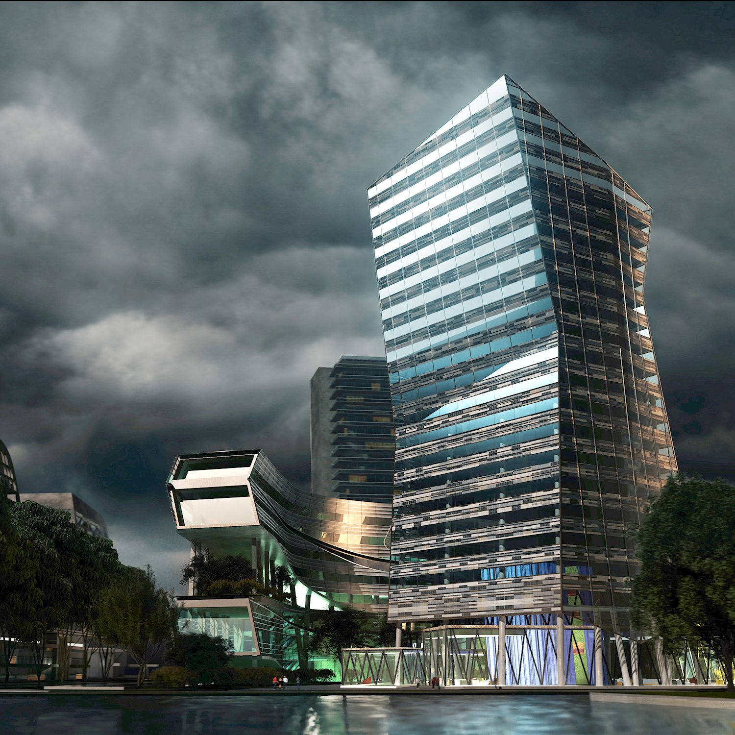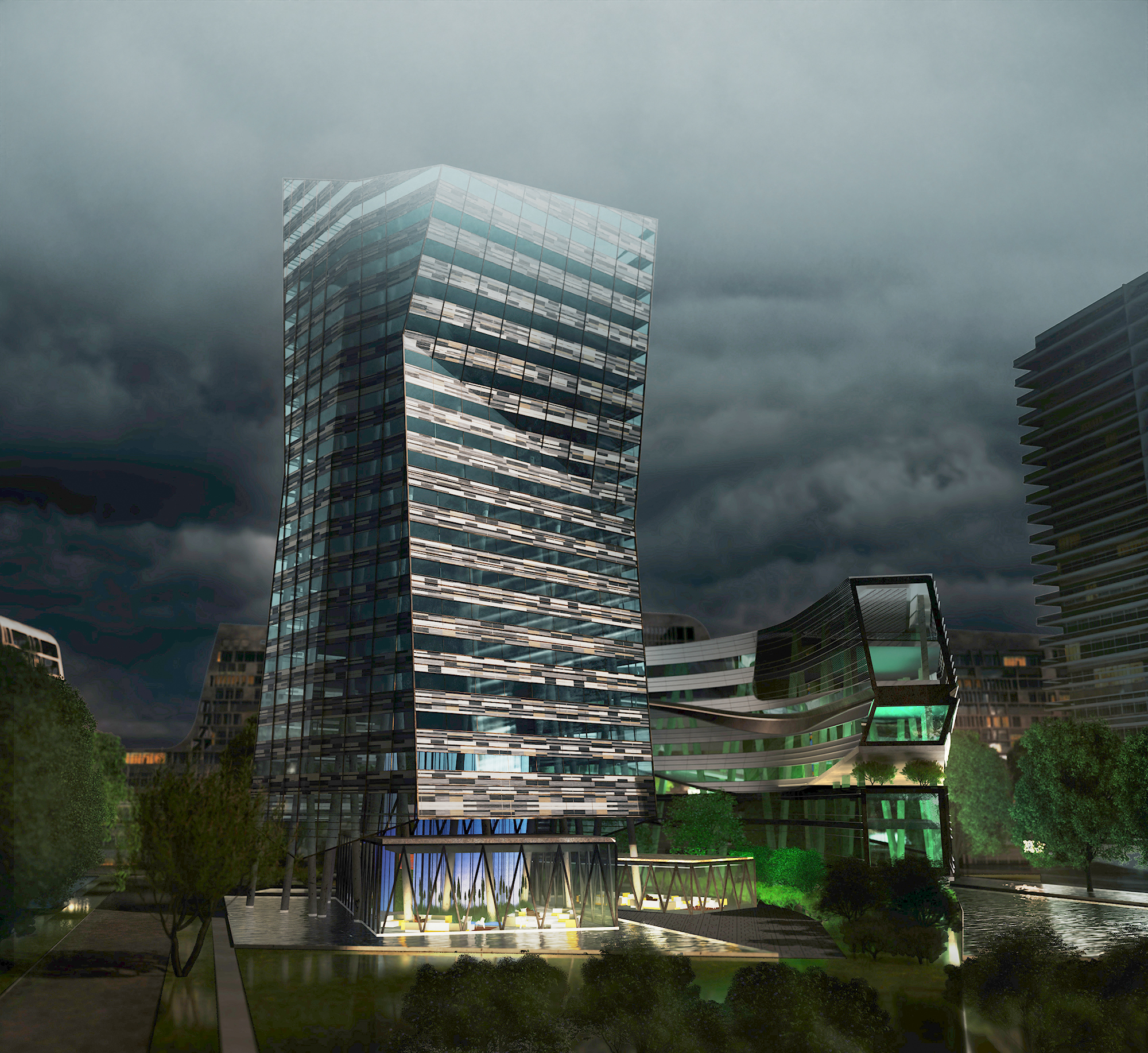 the site is surrounded by mostly empty or unfinished buildings. The renderings depict the concept in ambiguous conditions, illustrating the uncertainty surrounding both the project and the context.
