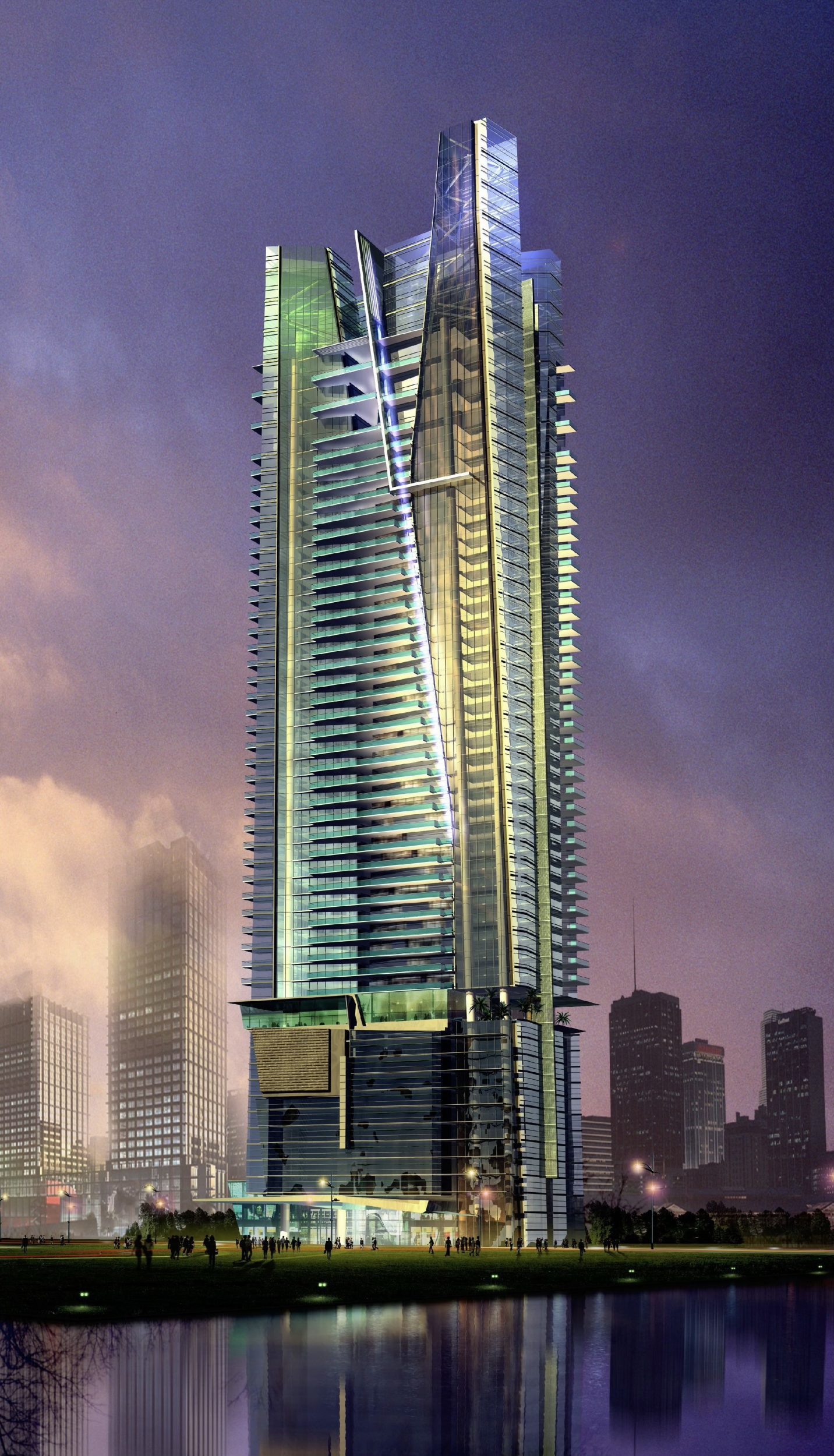 60 story, 350 room and 200 unit condominium tower, including a 10 level parking garage.The architecture is inspired by the geometric opportunities inherent in the letter ‘W’ (While at Nadel Architects)