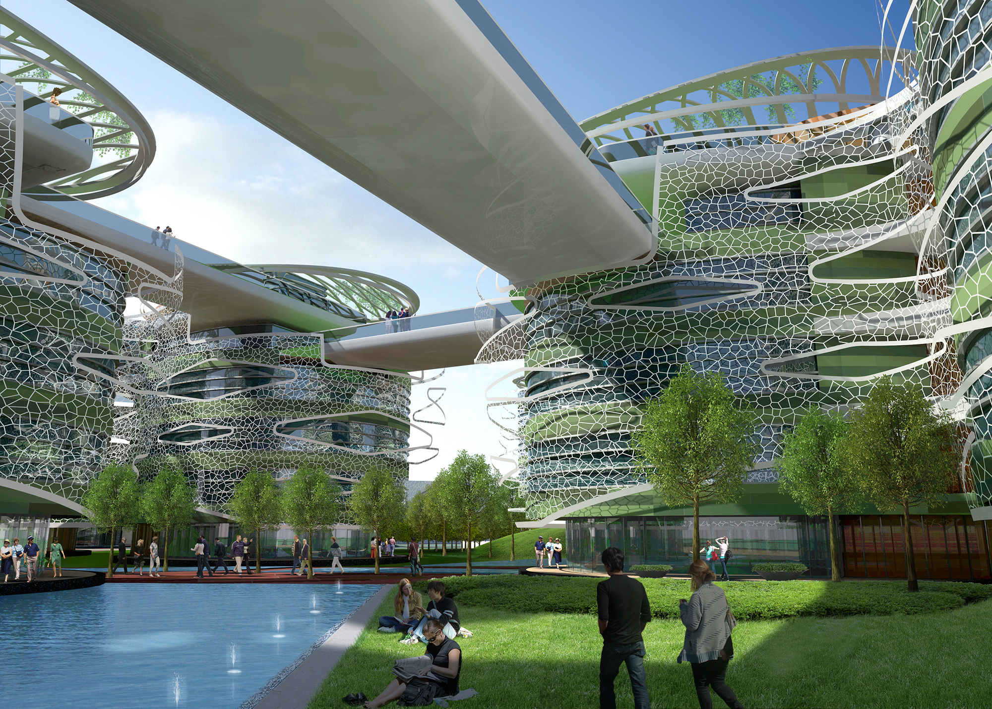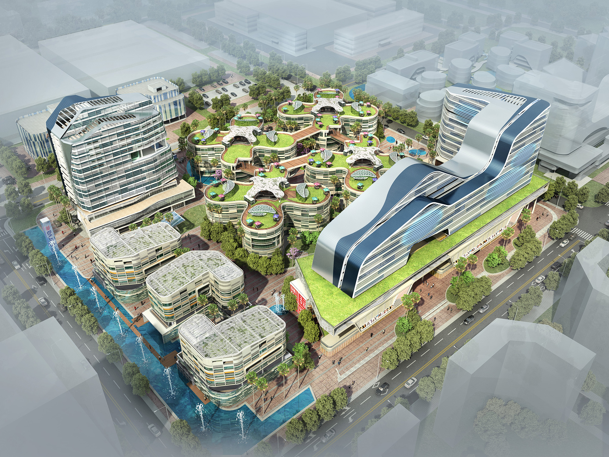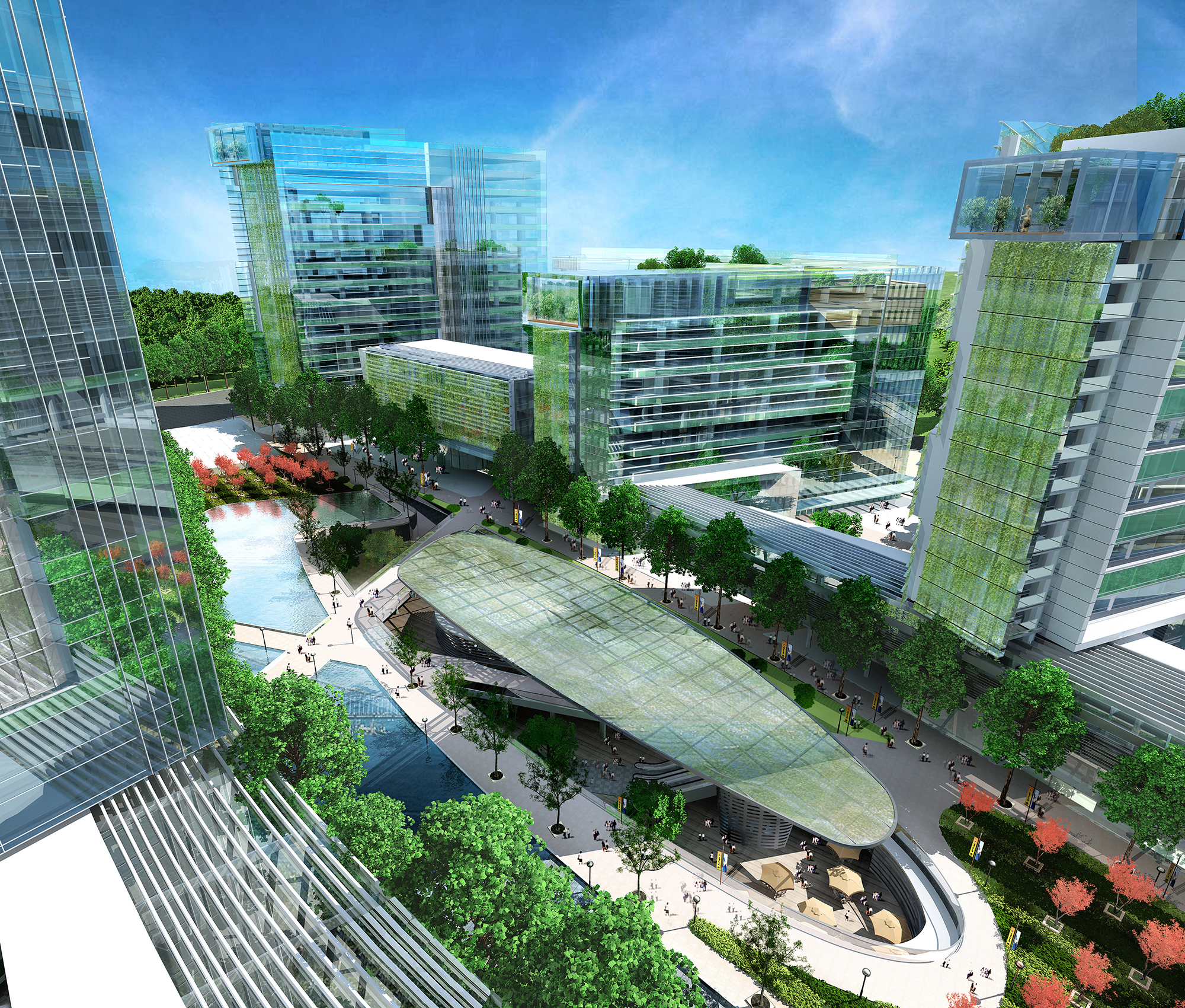 High-tech corporate headquarters, five star hotel, serviced apartments and a shopping mall.