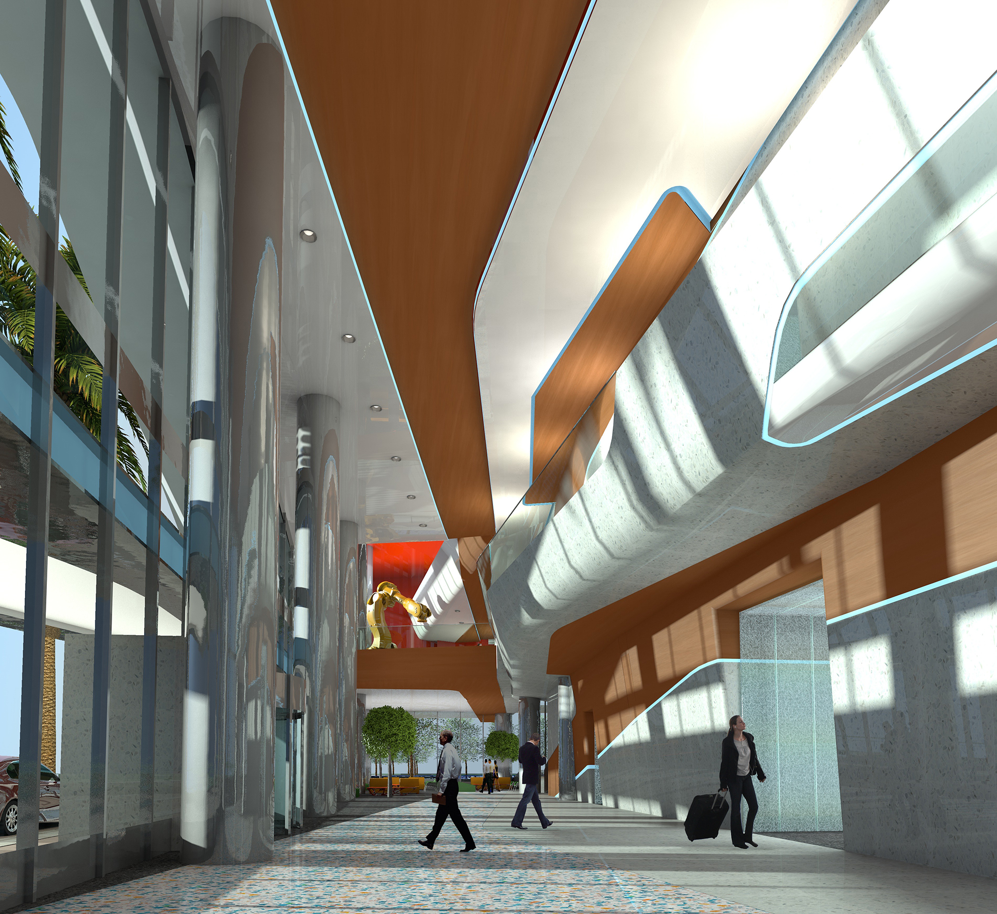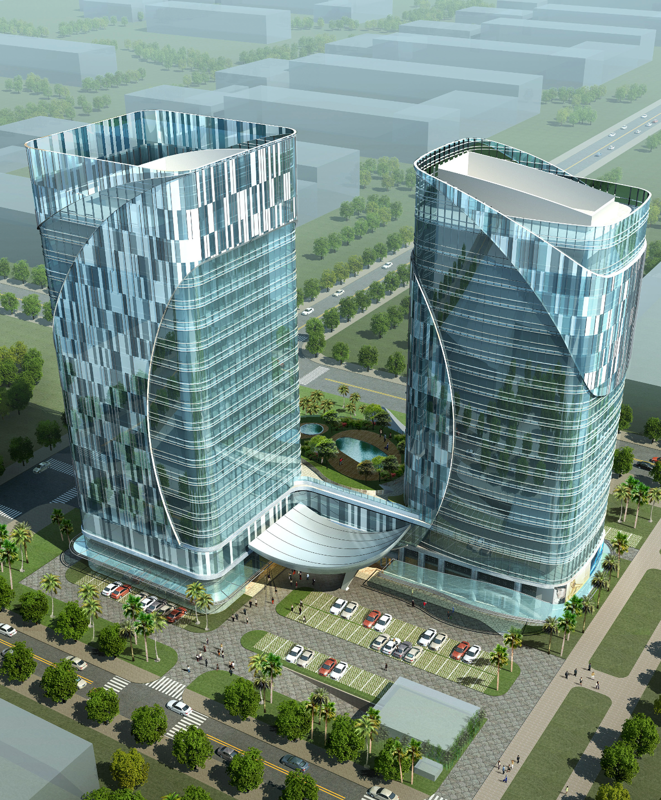 The program includes 2 office towers, a call center, an online customer service center, a 3 star hotel, a 4 star hotel, a conference and training center, and three employee cafeterias. The buildings are unified by a continuous lobby surrounding a large garden, creating as much interaction among employees as possible, enhancing team building across all disciplines.(With Nadel Architects)