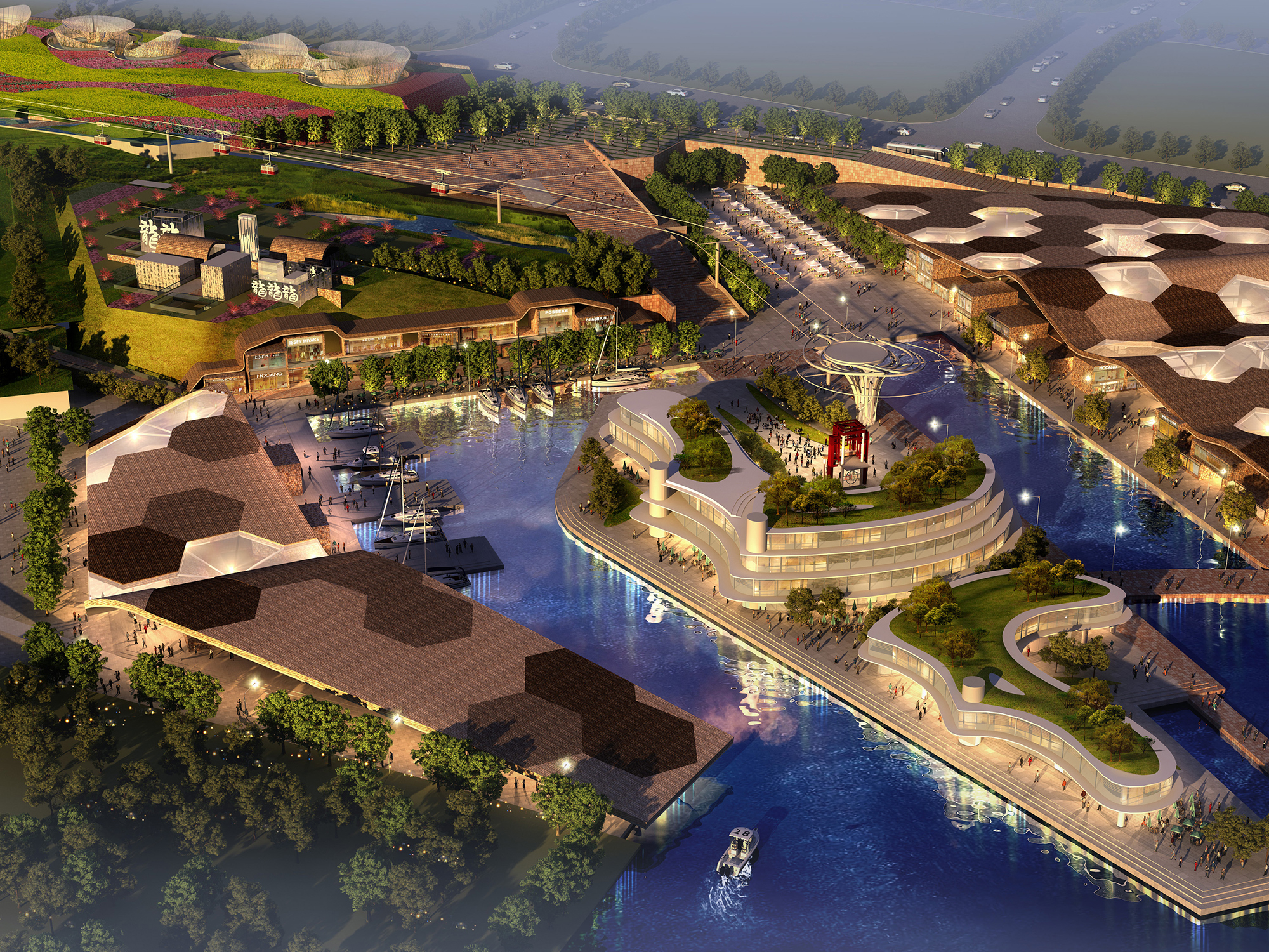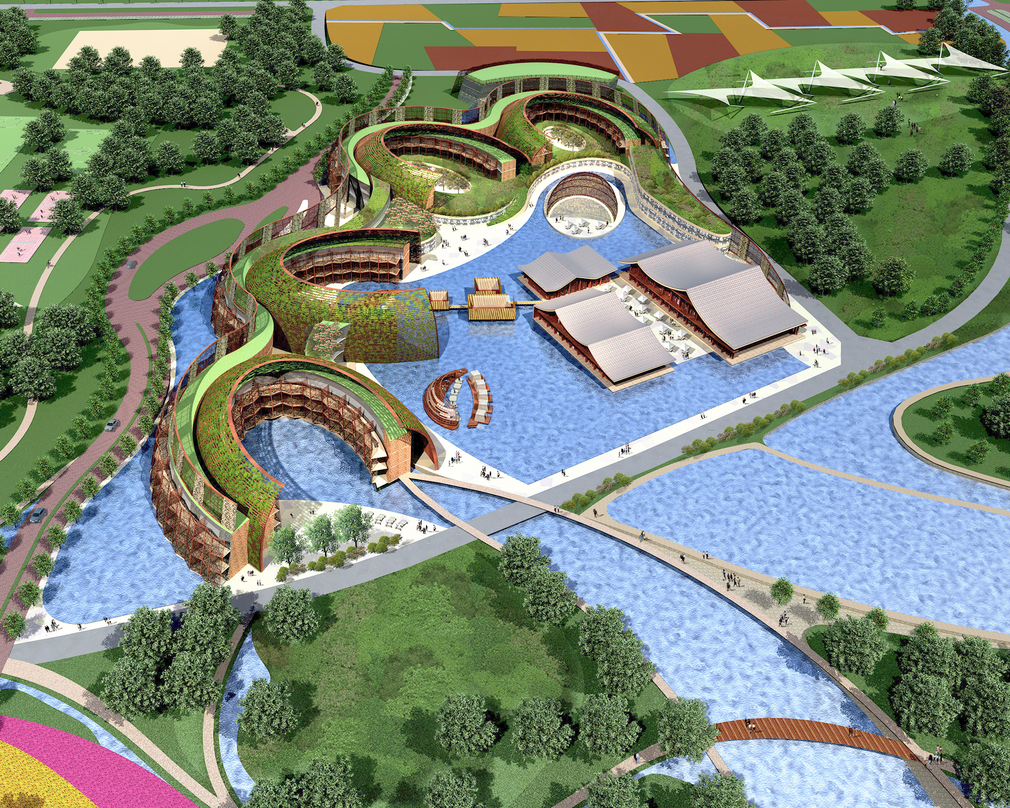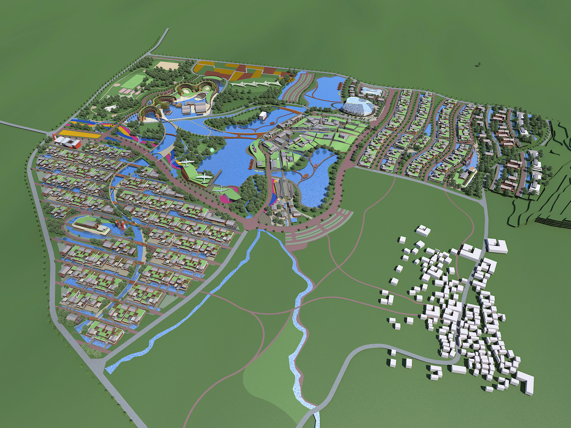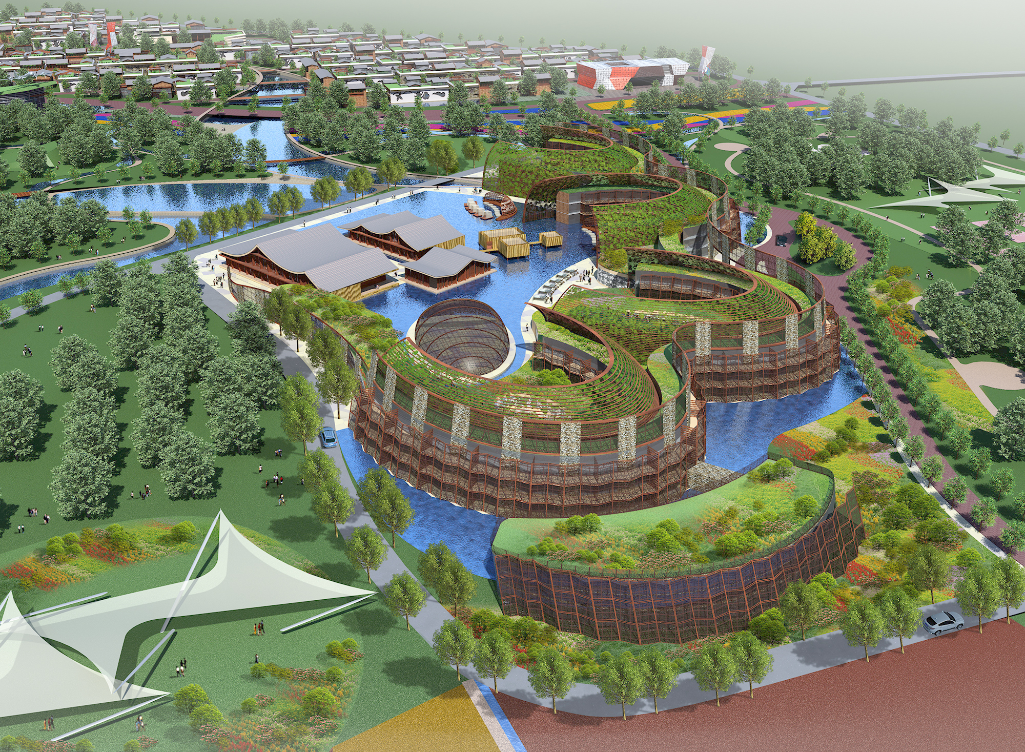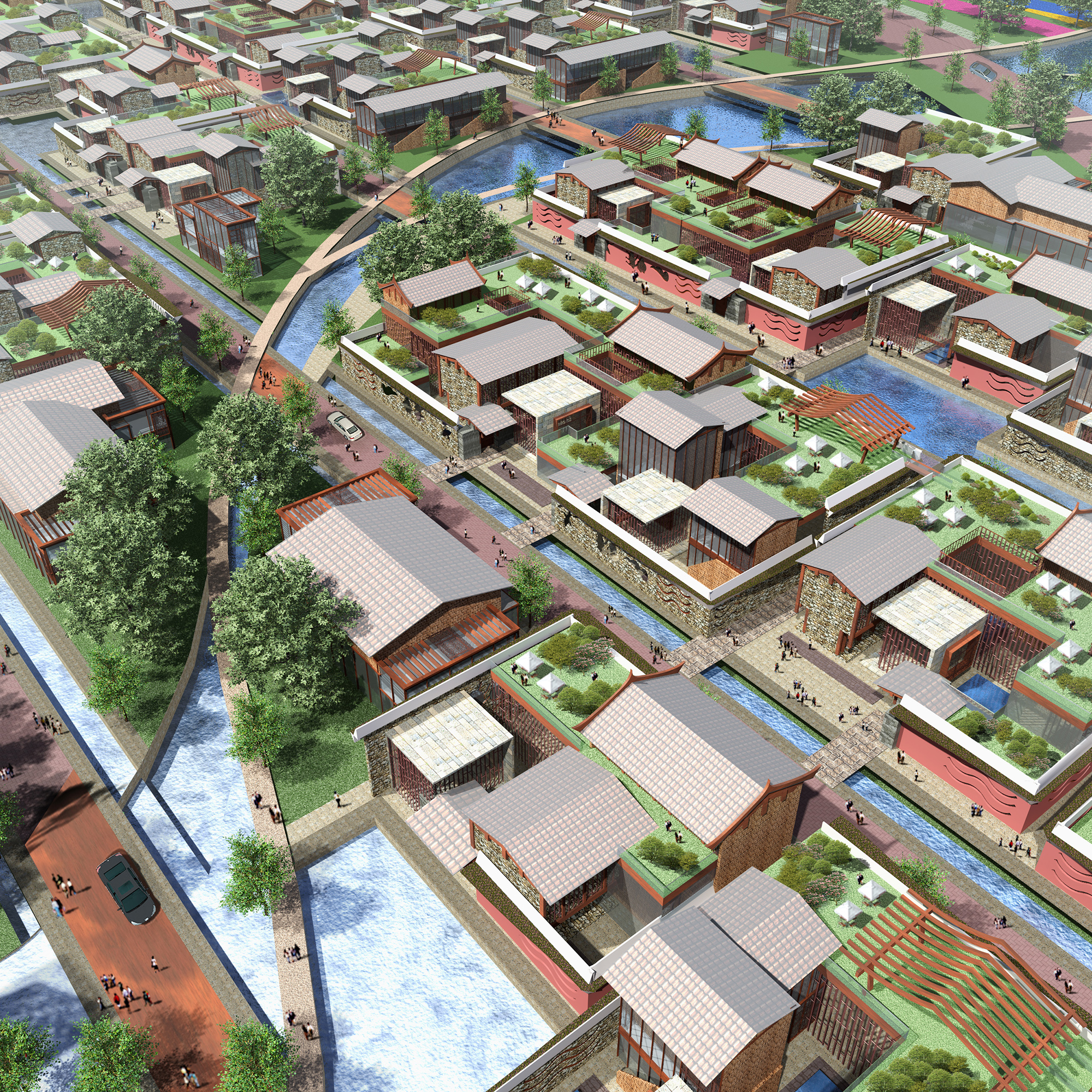 The program includes a 400 key ClubMed and the establishment of 2 residential towns, and one commercial shopping village.Planning and architecture draw predominantly from the rich Naxi culture of the population of Lijiang and their distinctive building style, culture, and Dongba, their beautiful image based script.