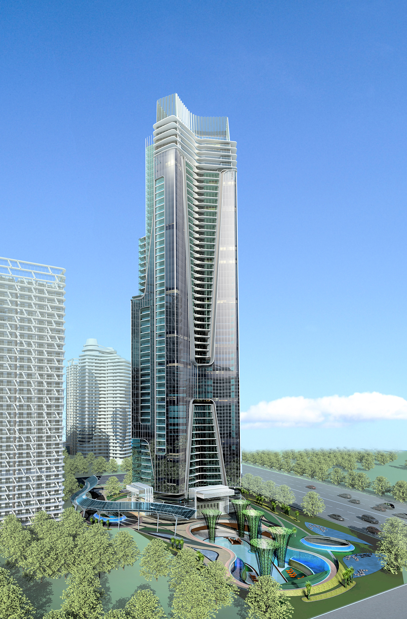 198m tower to be built on the last remaining site of Super 3 Studio’s Haikou Sunshine project. It will have over 200 units, a sunken plaza with wading pools, a cinema, restaurant, business center, a children’s play area, etc. Numerous designs were studied for this quintessential tower in Haikou’s Changliu area.