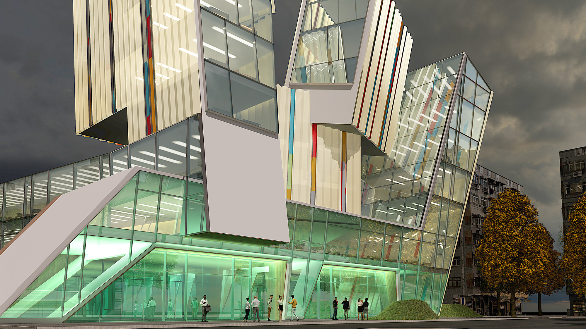 CoZone exemplifies the role of architecture as a catalytic presence—both spatially and experientially. Its assertive form and luminous skin are intentionally provocative, a deliberate counterpoint to the monotony of its surroundings. Rather than recede into the background, CoZone demands attention, offering an alternative visual and experiential narrative. It is architecture as a spatial act of optimism—foregrounding the belief that built form can reframe not only the urban condition but also the emotional tenor of those who occupy it.